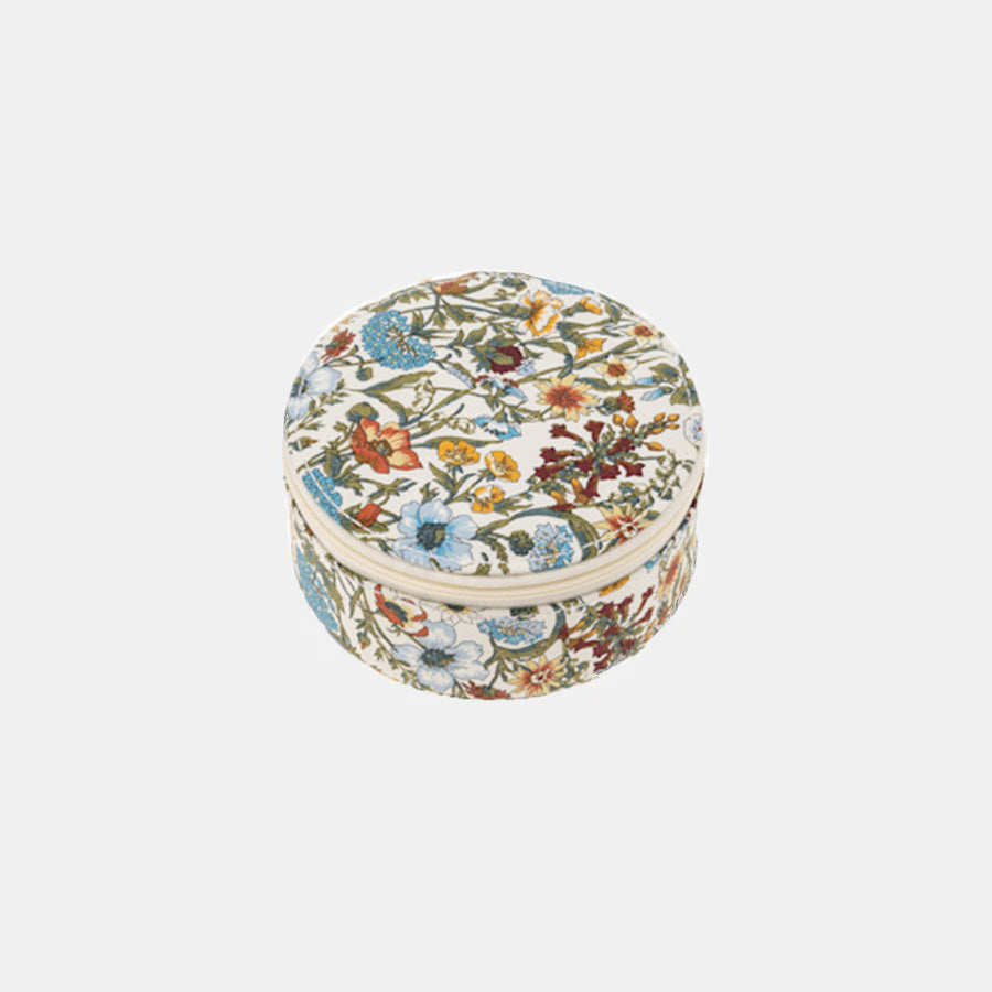 Round Jewelry Box in Liberty Poppy Daisy Teal