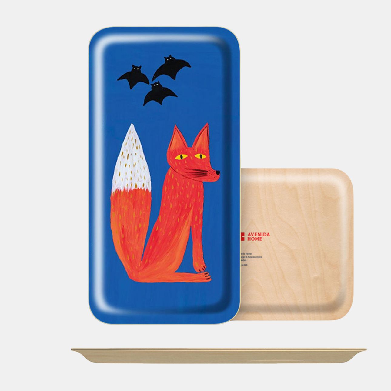 Bring a dash of whimsy to your tea break with this blue fox tray from Avenida Home. A cunning fox, oblivious to hovering bats, adorns the strong yet lightweight birch veneer. Heat- and liquid-resistant, it’s just as handy for serving drinks as it is for storing keys and loose change. Designed by Studio Avenida, its vibrant colors and playful imagery will liven up any room.