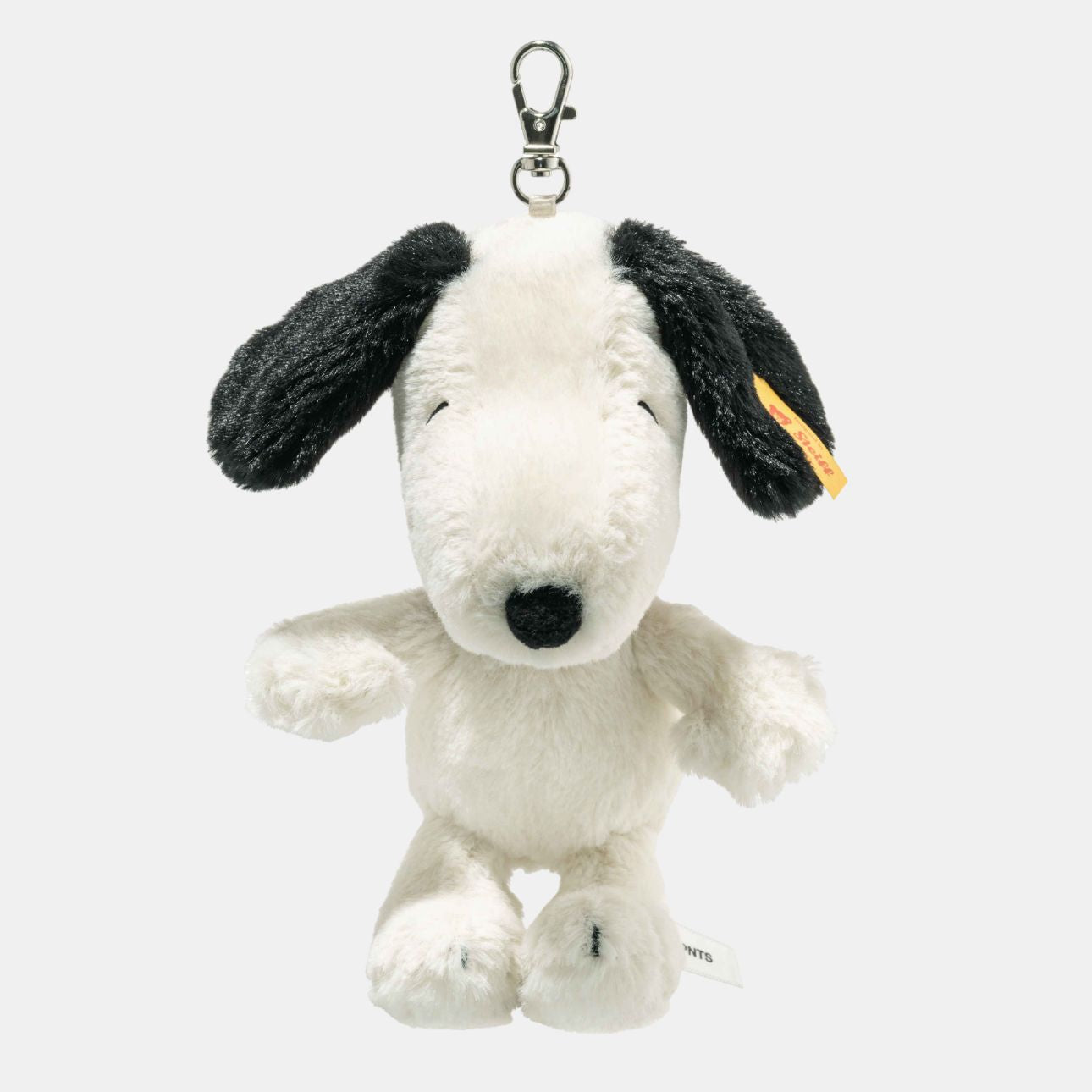 Meet Snoopy, the world’s most lovable and dreamy beagle from the iconic Peanuts comic series. Usually found lounging on the roof of his doghouse, this time Snoopy prefers to come along for the ride. Standing 15 cm tall, this soft plush pendant is perfect for little ones to take with them wherever they go. With his delicately embroidered eyes and mouth, Snoopy brings comfort, fun and a smile throughout the day. Finished with Steiff’s signature stainless steel Button in Ear, a trusted mark of quality. Please remove the label, pendant and all attaching parts before giving the product to children.