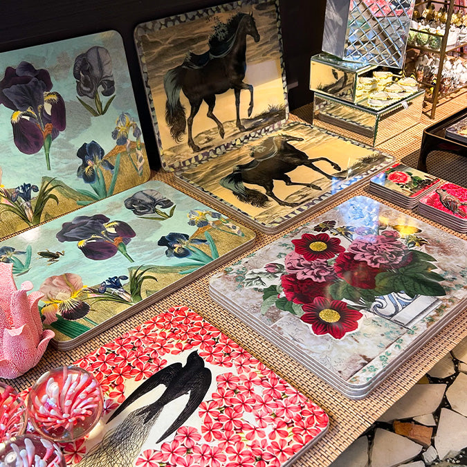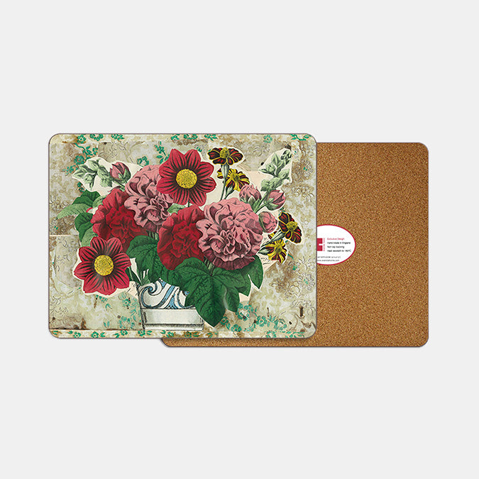Details: Floral table mat design, created in collaboration with John Derian. Features a protective melamine coating, non-slip cork base and is heat-resistant up to 160°C. Handmade in England. Do not submerge in water.