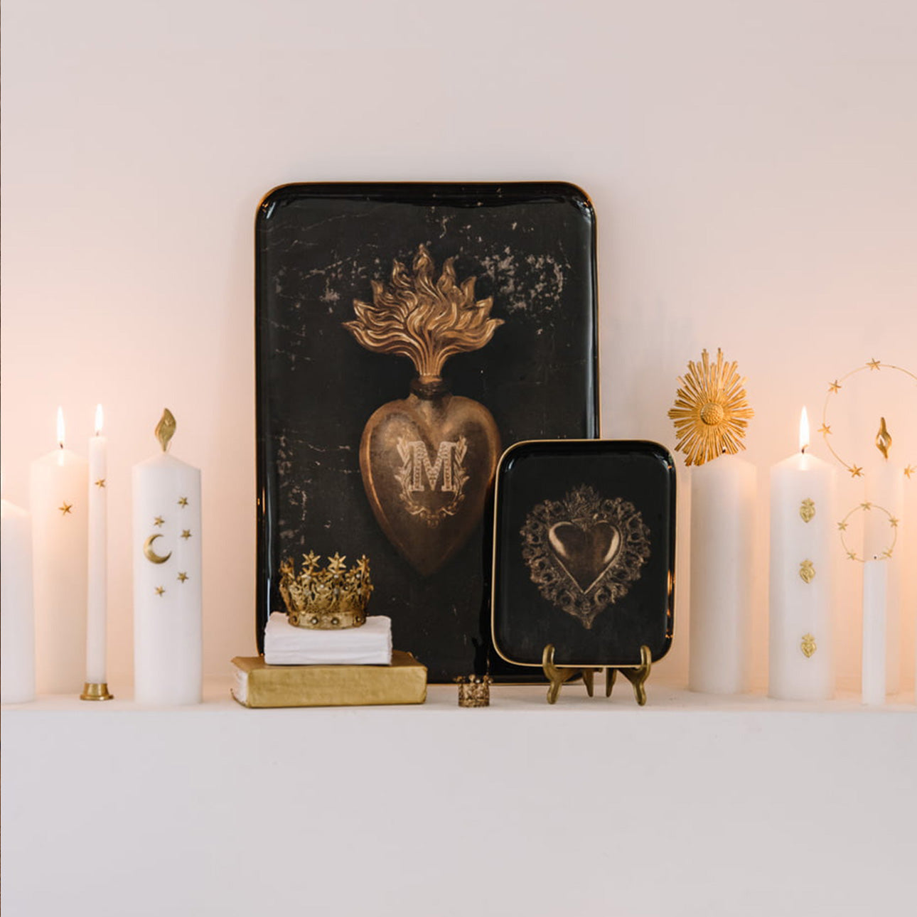 Details: Decorative tray featuring hand-painted golden stripes, a playful yet elegant touch to any table.
