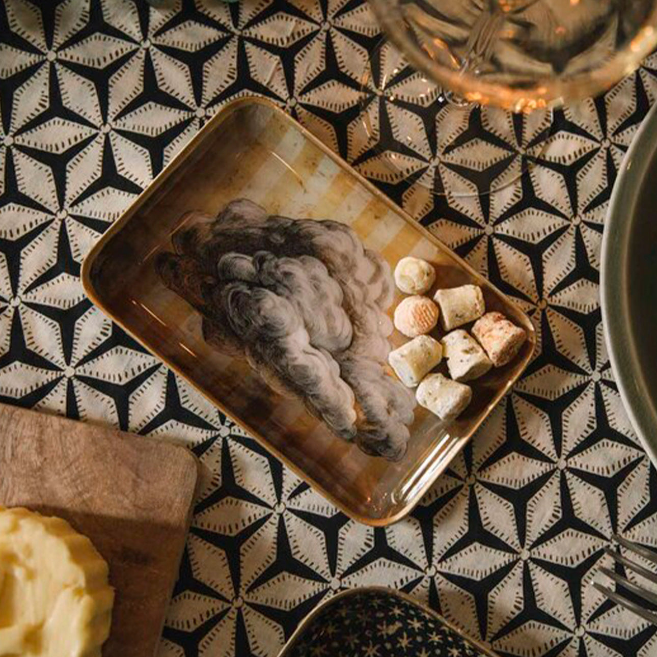 The Nuage Small Tray by Boncoeurs is a poetic little piece, featuring a hand-drawn cloud floating over warm golden stripes. Its compact size makes it perfect for holding jewelry, keys, or incense or simply as a decorative moment on a shelf or nightstand. A tiny tray with a big dose of charm.