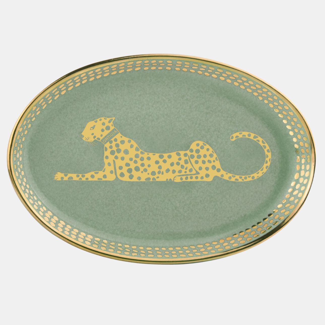Materialen: Keramische ovale schaal met goudkleurige zeefdruk
