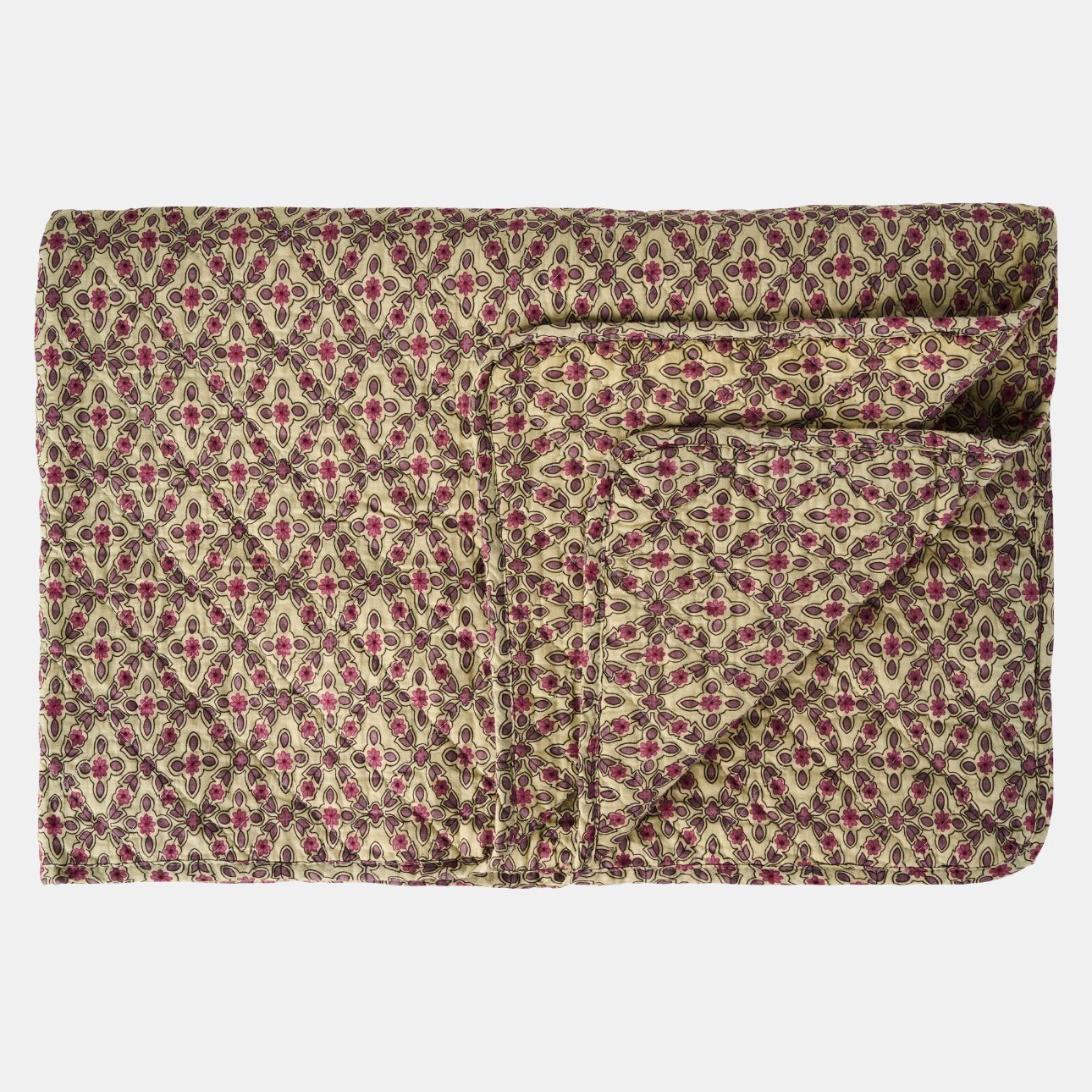 Quilt met raamdessin in framboos en paars tinten