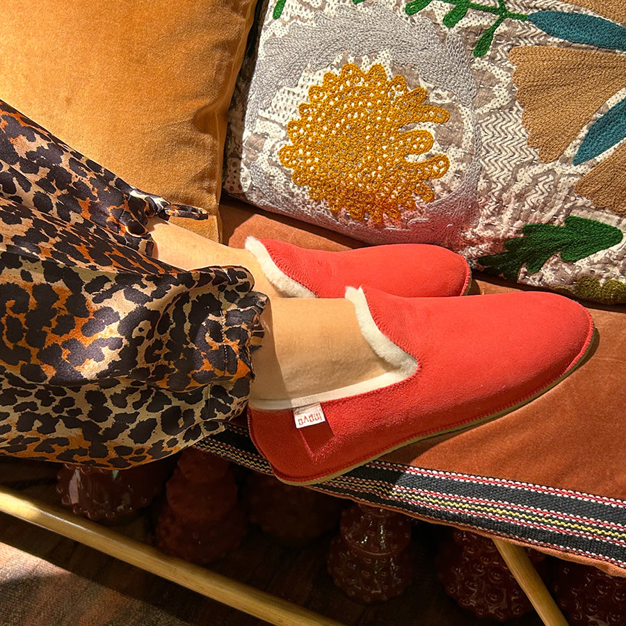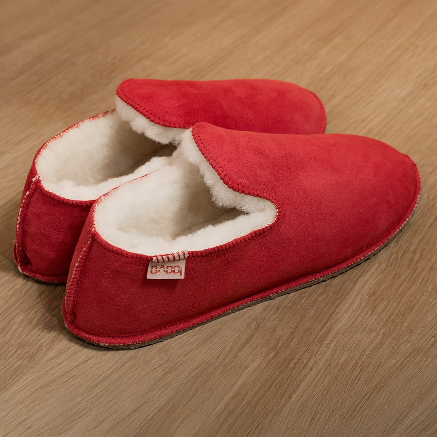 Keep your feet warm and cosy with the Sheepskin Slippers in Cherry. Handmade from vegetable-tanned (chrome-free) sheepskin with a naturally soft wool lining, these slippers wrap your feet in gentle, breathable warmth the moment you slip them on.