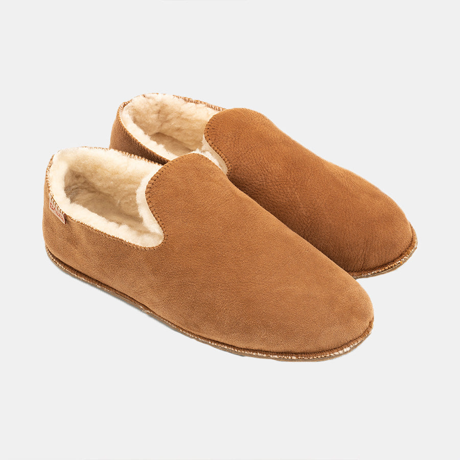 These sheepskin slippers have a comfortable, universal fit. The wool may feel snug at first, but it naturally softens and flattens with wear. We recommend choosing your usual size.