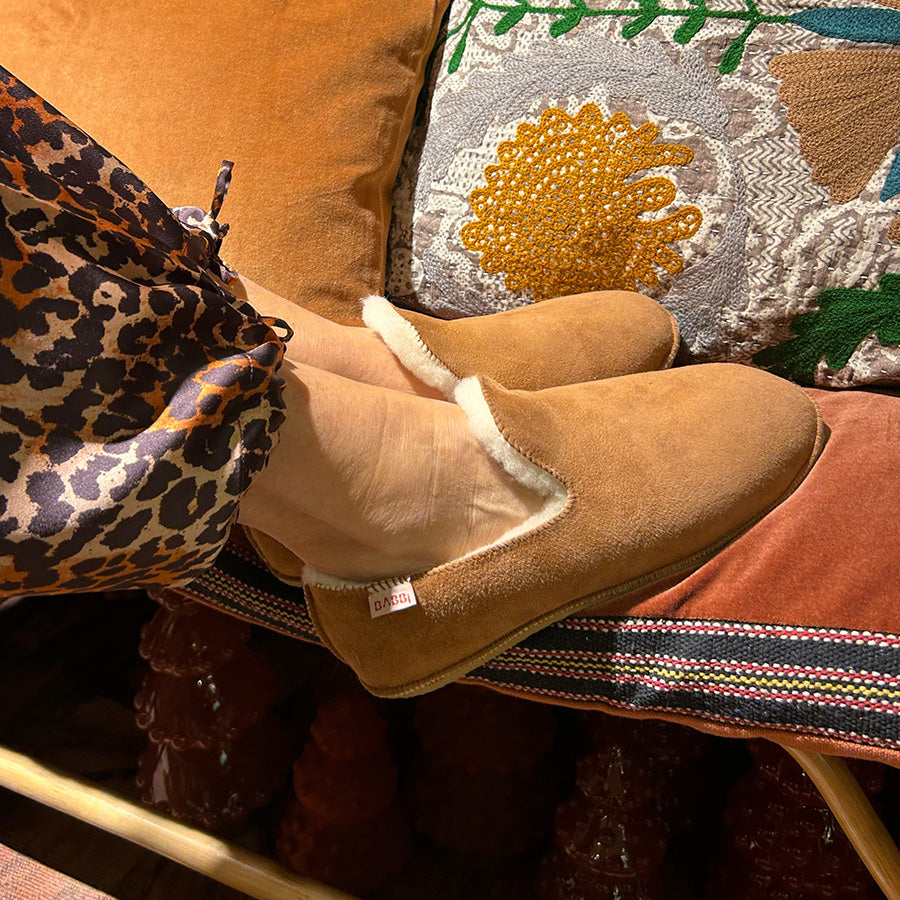 Material: Vegetable-tanned, chrome-free sheepskin (inside & outside)